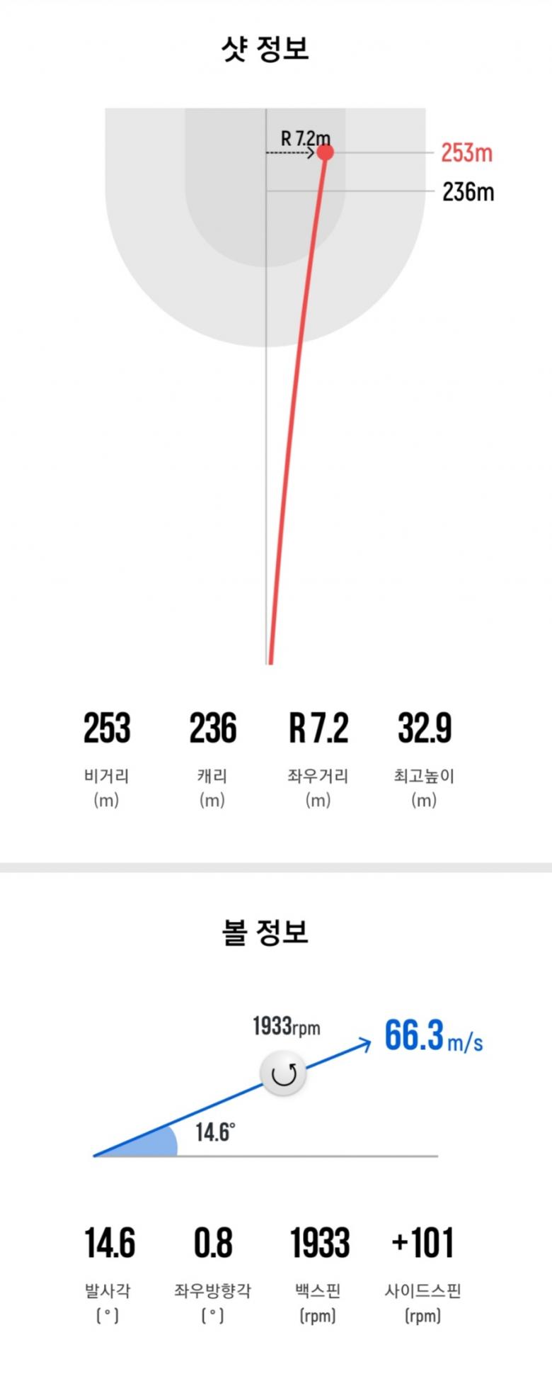 그 전 드라이버로는 아무리 애써봐도 볼스 64m/s가 최대였고, 거리는 239m 가 최대였던 걸로 기억합니다.