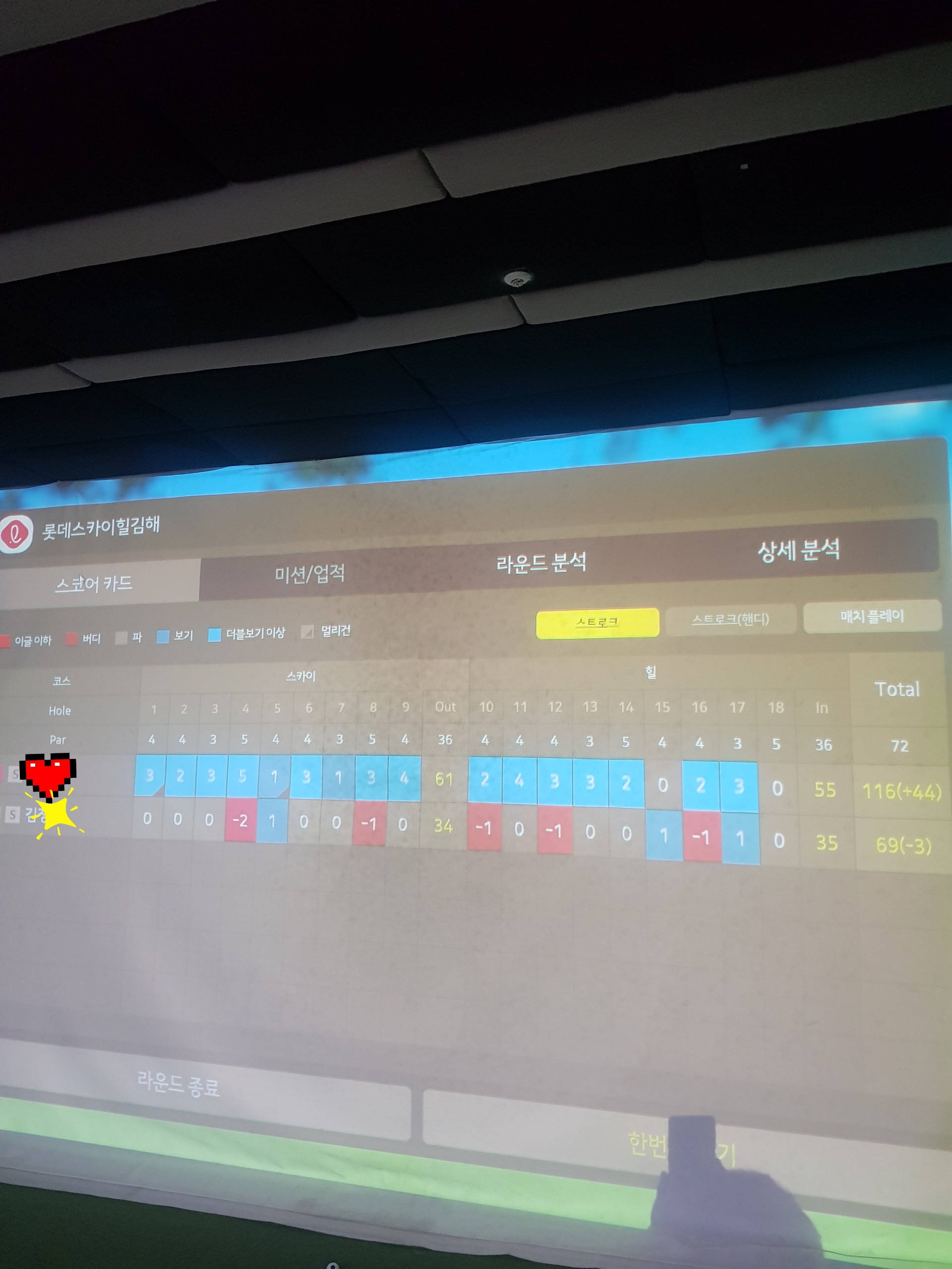 100 타를 깨든지 아니면 홀당 업다운이었는데 한 홀도 안질꺼라 생각했는데 초반에 매섭게 이글도 하고 막 분위기 좋았는데...와이프는 그걸 또 후반에 몸풀리니 파도 잡고 기어코 한홀은 이기시네연 ㅎㄷㄷ