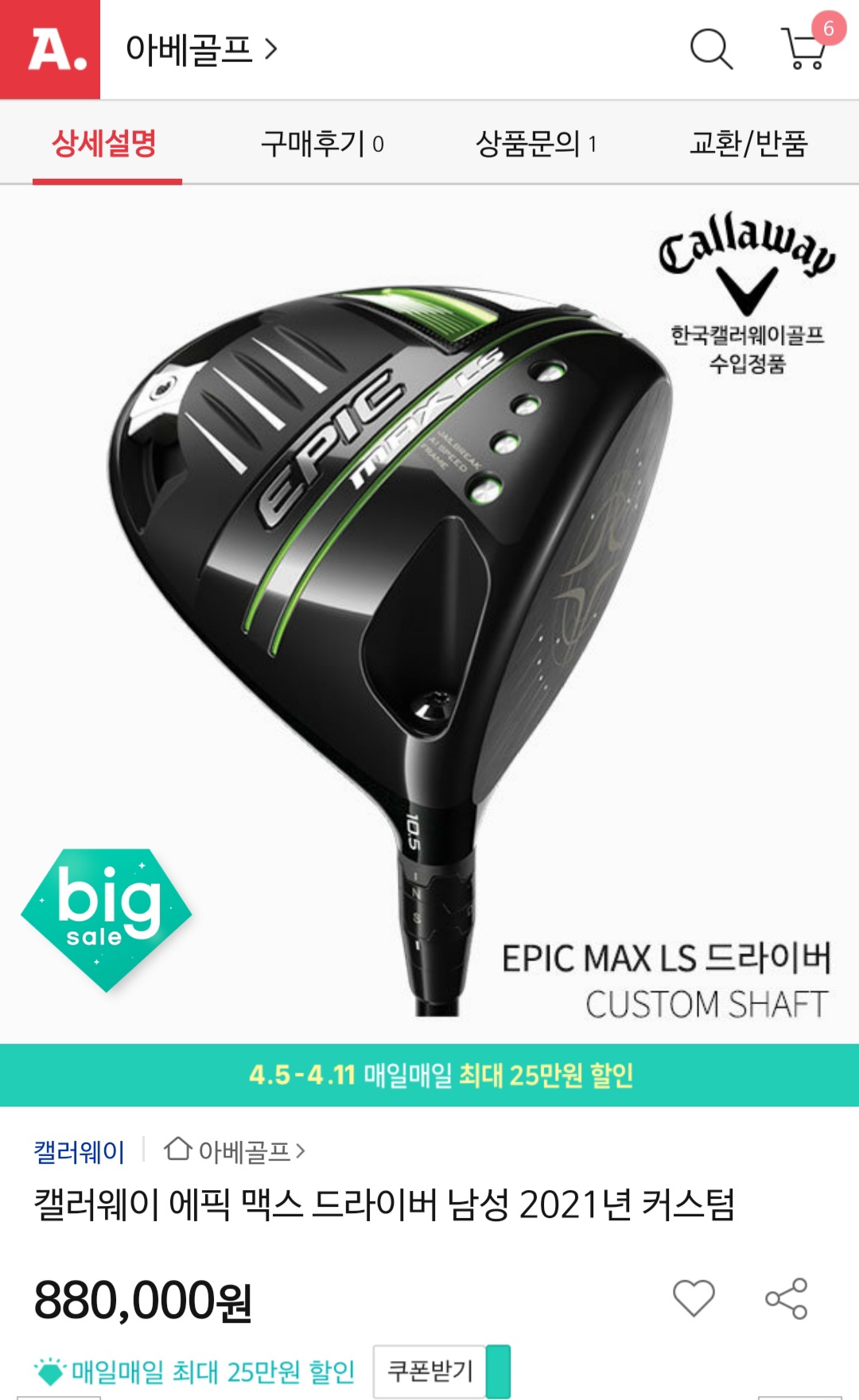 가격 좋네요. 제가 최근에 구매한 것 보다 4~5만원 저렴한 것 같습니다. ㅜㅜ 맥스LS가 맞다는 가정하에, 투어AD HD-6S 기준 조금 쳐본 결과로는 쉬운 듯 어렵다는 느낌입니다. 일단 라이각이 기존에 사용하던 드라이버와 약간 차이가 있고, 드라이버 길이도 특주 치고는 길어서 그런 것 같습니다. 정타에 맞았을 때 느낌은 공을 뚫고 지나가는 느낌입니다. 과거 에픽, M1 등의 1세대 카본 드라이버들과는 다르게 플라스틱의 이질감은 거의 느껴지지 않습니다. |
