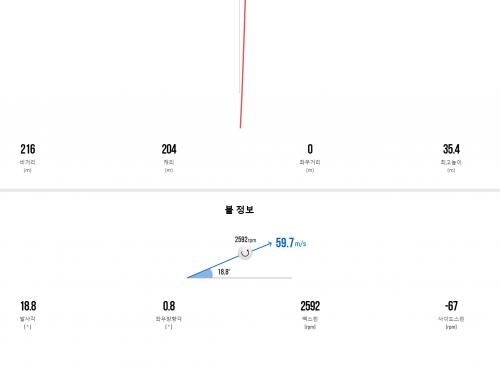 드라이버 발사각이 너무 높네요. 백스핀은 낮은데. 드라이버 스윙에서 파워 로스가 많으면 저도 3번 우드랑 거리 차가 나지 않더군요. | ||