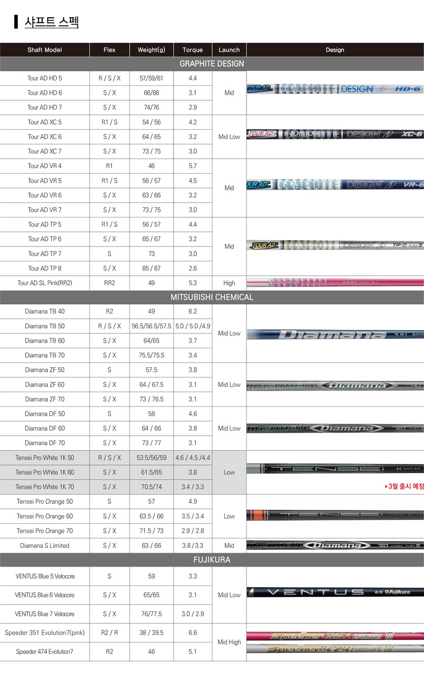 요즘 유행?이 가볍고 높은 토크까진 좋은데 하이킥이 대부분이라... 탄도가 낮은 저로썬 조금 겁이 납니다. 사실 혼자 생각에는 텐세이 프로 화이트 1K 50R로 가고 싶었는데, 하이킥에서 발목을 잡혔습니다. 혹시 말씀하신 샤프트중에도 로우나, 미드로우킥 샤프트가 있을까요?