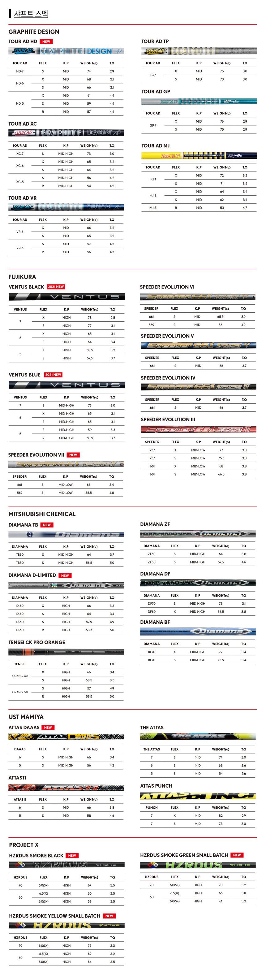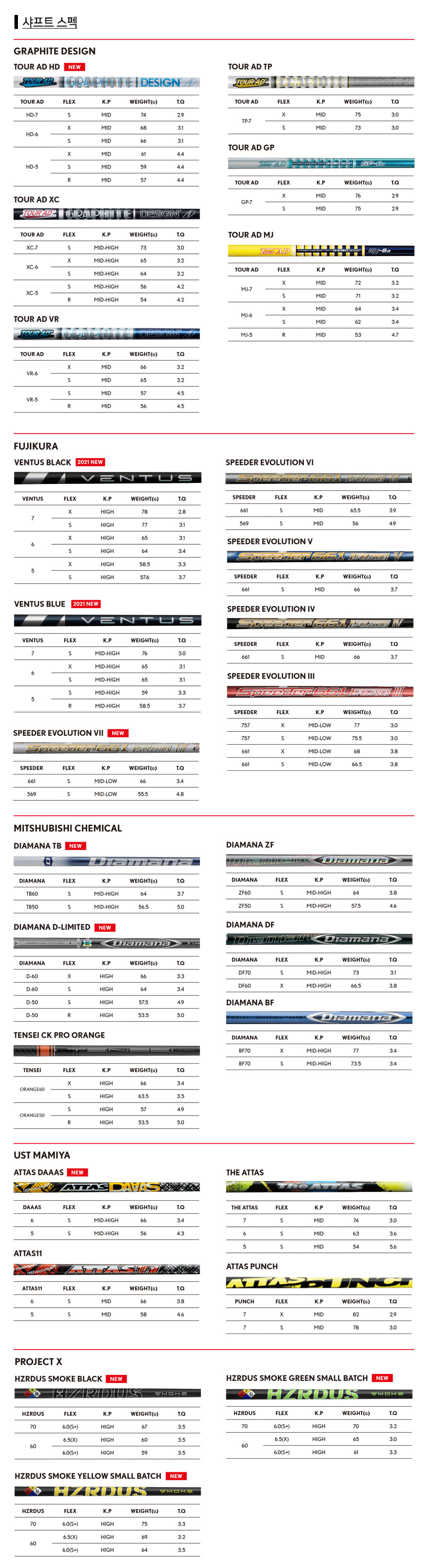 선배님들 샤프트 스펙 확인해보기 편하시라고 올려봅니다.