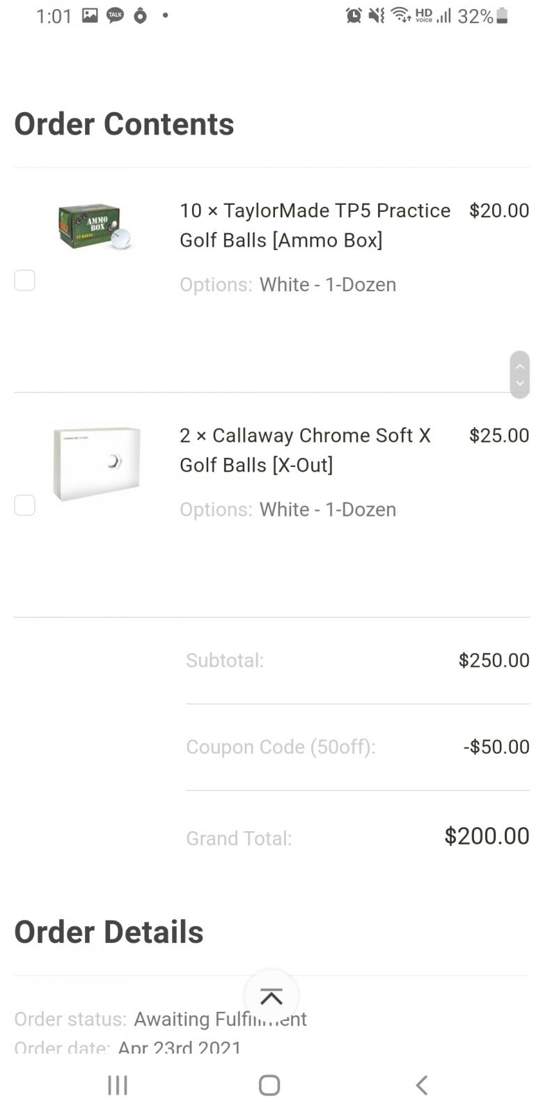 TP5 프랙티스 10더즌 200불 + 기타 볼 50불 해서 50 할인 받았습니다.