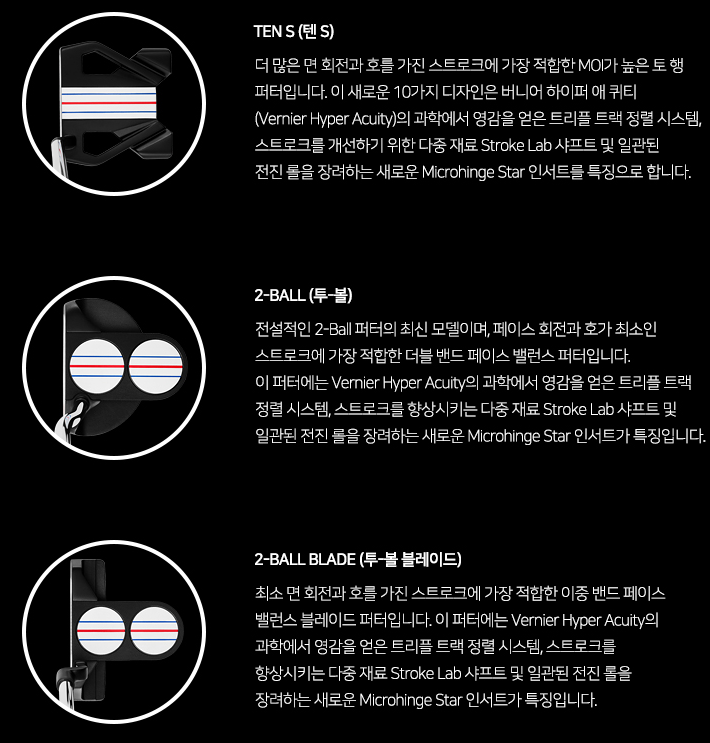 공이 왼쪽으로 빠진다면, 스트로크가 직선이실 경우 페이스밸런스 (더블밴드) 넥을 추천 드립니다. 그립 차이만 가지고도 평가한 결과가 있어서 공유드려요.