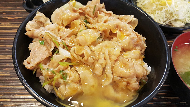 우리나라 덮밥집은 소스국물이 밥을 다 적실정도지만 일본에서는 밥의 윗부분만 적시면 되고 맛이밴 고기면 충분합니다.