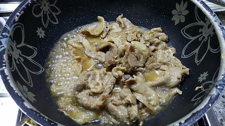 움...고기를 따로 볶지말고 그냥 쯔유 물 혼합물에 바로 넣어서 익히니까 고기색이 연해지는군요...맛도 더 나은거 같,,,응? ㅎㅎㅎ |