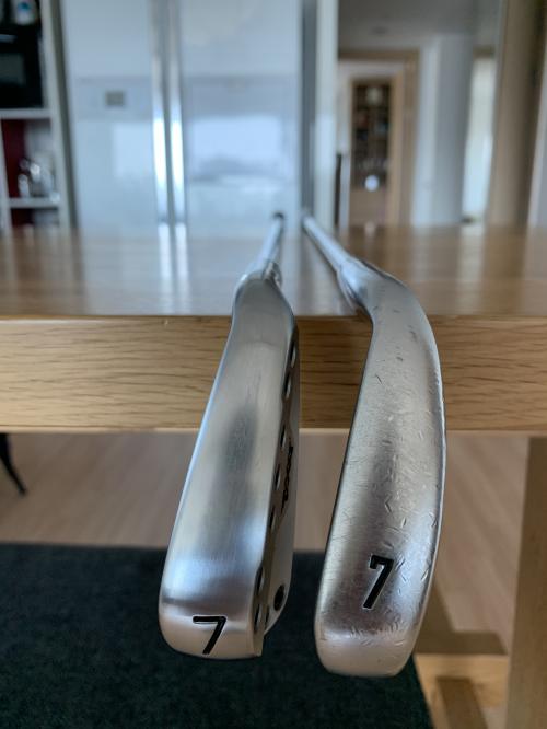 *위에서 바라봤을땐 캘러웨이 APEX에 비해 약간 더 얇네요. 그러나 타 브랜드 상급 아이언에 비해 부담스럽게 작거나 얇지않네요. 0311P를 살지 0311T를 살지 많이 고민했는데 (얇은 헤드를 선호하는 입장에서는) 0311T를 사길 잘했네요.