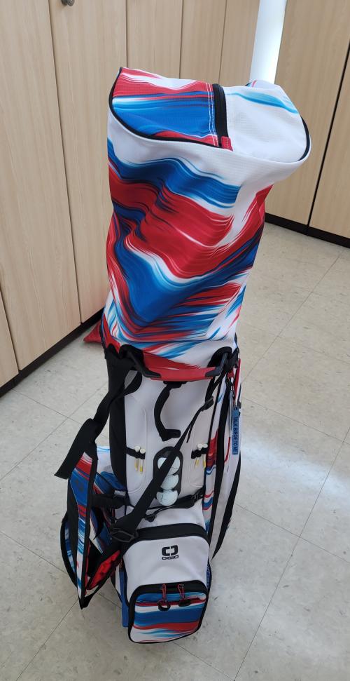 저도 받았습니다만 첫 느낌 부터 좀 실망. , 유니크한 색상 이지만 사진 보단 못한 느낌입니다. 방수천 재질이라 고급 스럽진 않더라구요. 개인적으로 캐디백을 좋아 하나봅니다. 연습백으로는 좋네요. 필드 갈땐 그냥 캐디백 들고가야겠습니다. 자립 엄청 잘 됩니다. | ||