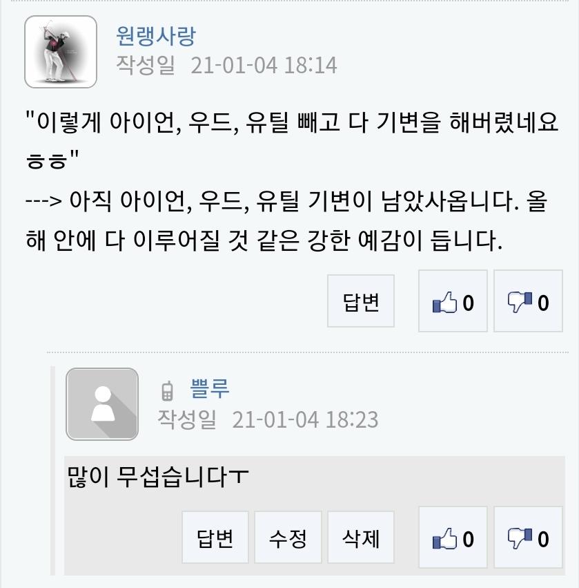 저도 덕분에 포지드스타 질렀습니다 ㅠㅠ 이제 드라이버랑 웨지 남았네요