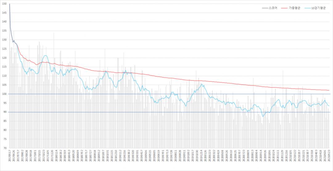 우하향하는 저 그래프가 스코어라서 다행입니다. 주식이나 코인이었다면.................