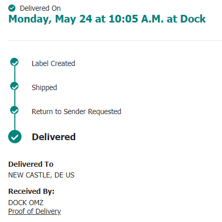 아래 트래킹 정보 상 중간에 회수 단계가 있는데 그대로 배대지로 배송해 버렸네요