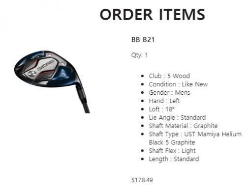 기분좋게 협력사에서 빅버사 B21 5번 우드 구매 진행 후 오더 컨펌 메일을 받았는데...