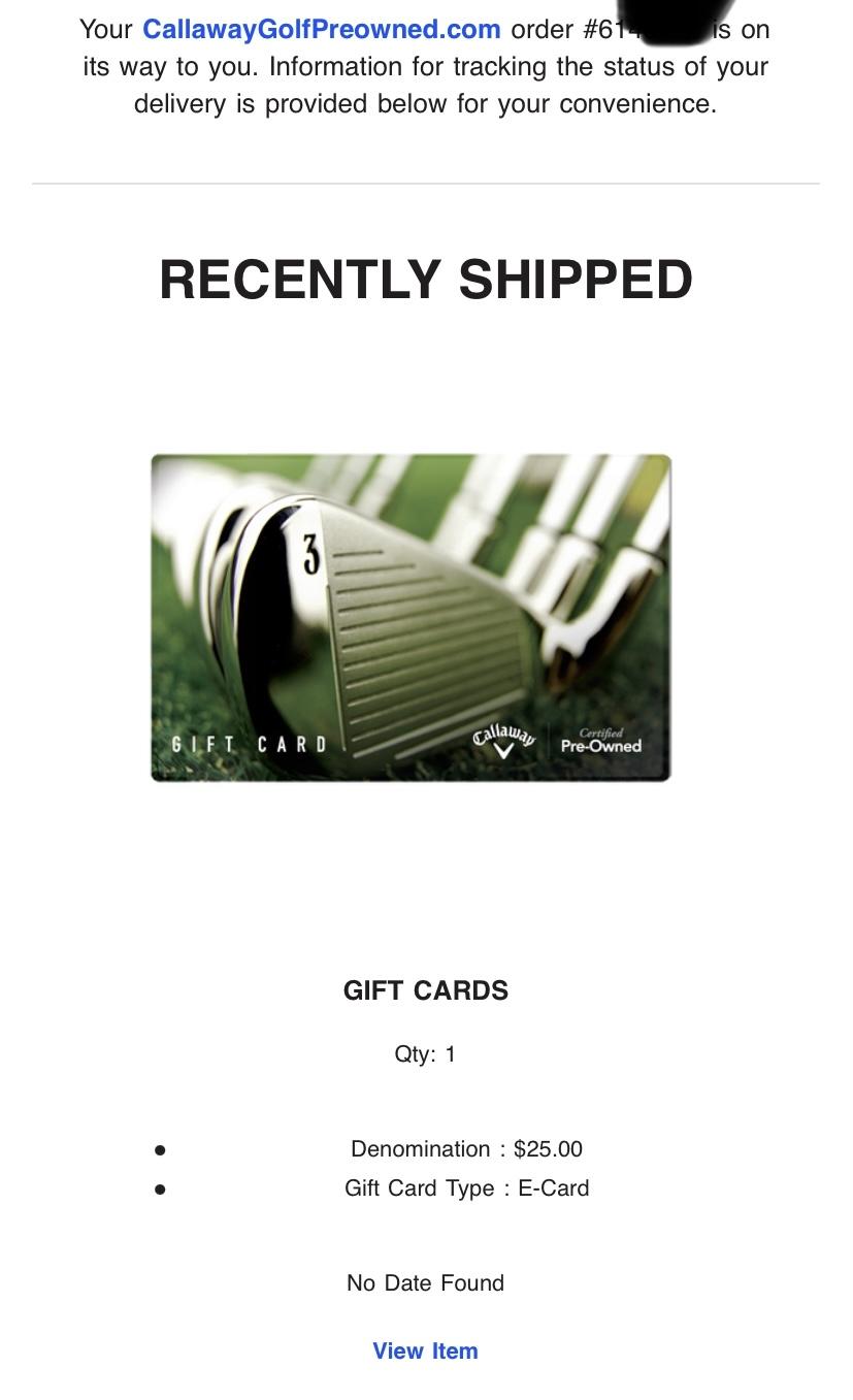 Shipped 메일에 기프트카드(E-card)가 포함되어 있지는 않네요