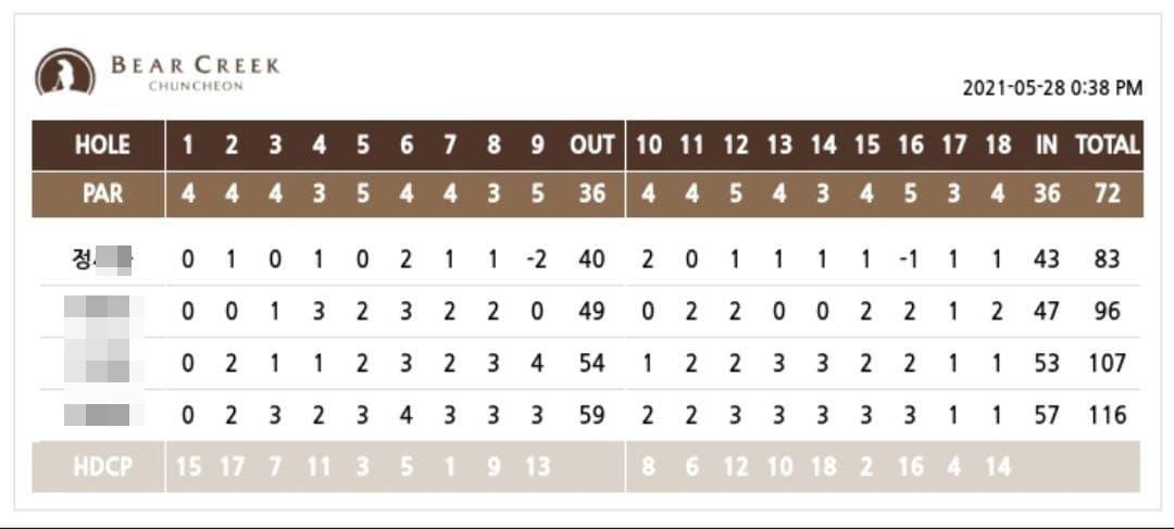 저번 주 금요일에 최애구장 베어크리크 춘천에서 공식 첫 이글을 기록했습니다.