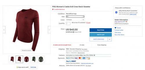 여성용 케이블 니트가 세일해서 $45 입니다.