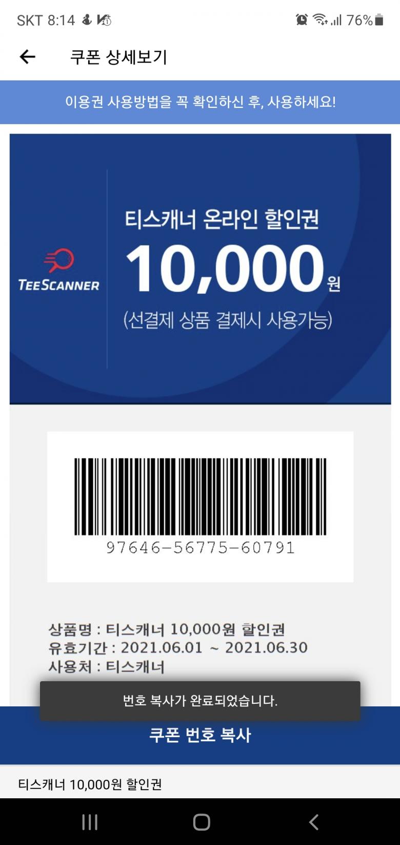 티스케너 쿠폰 없이 예약 할려니 뭔가 손해보는 느낌이네요. ㅎㅎ