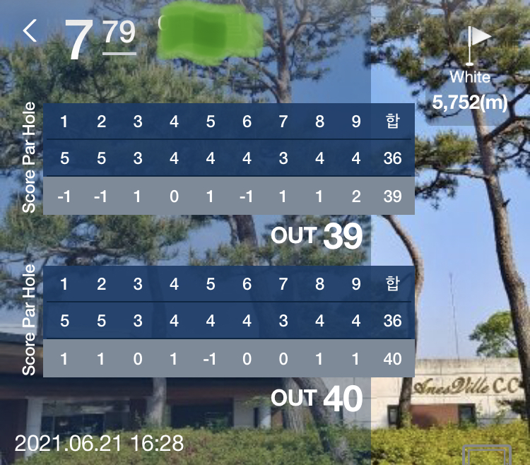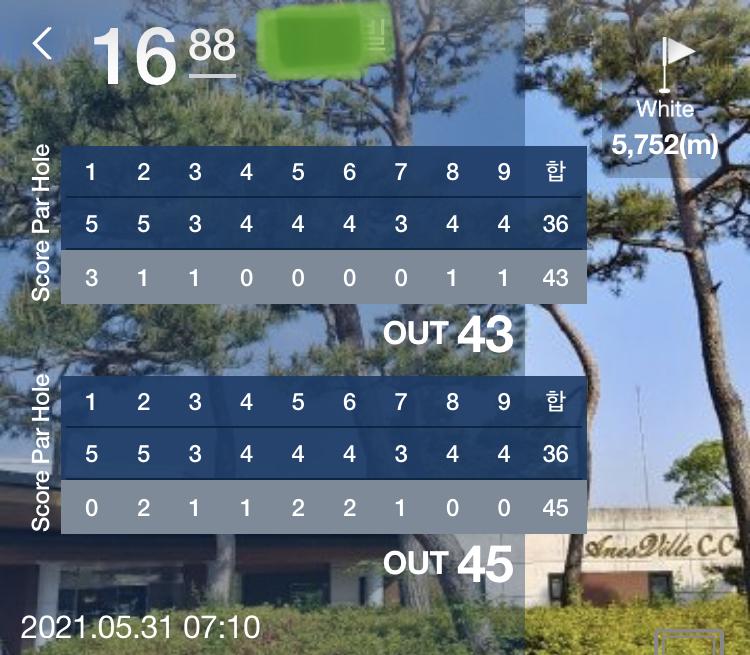 천원짜리 저녁 내기 해서 스코어는 정확히 적었습니다만 노캐디라서.. ㅎㅎ 증빙(?) 해줄 수 있는 사람은 없네요.