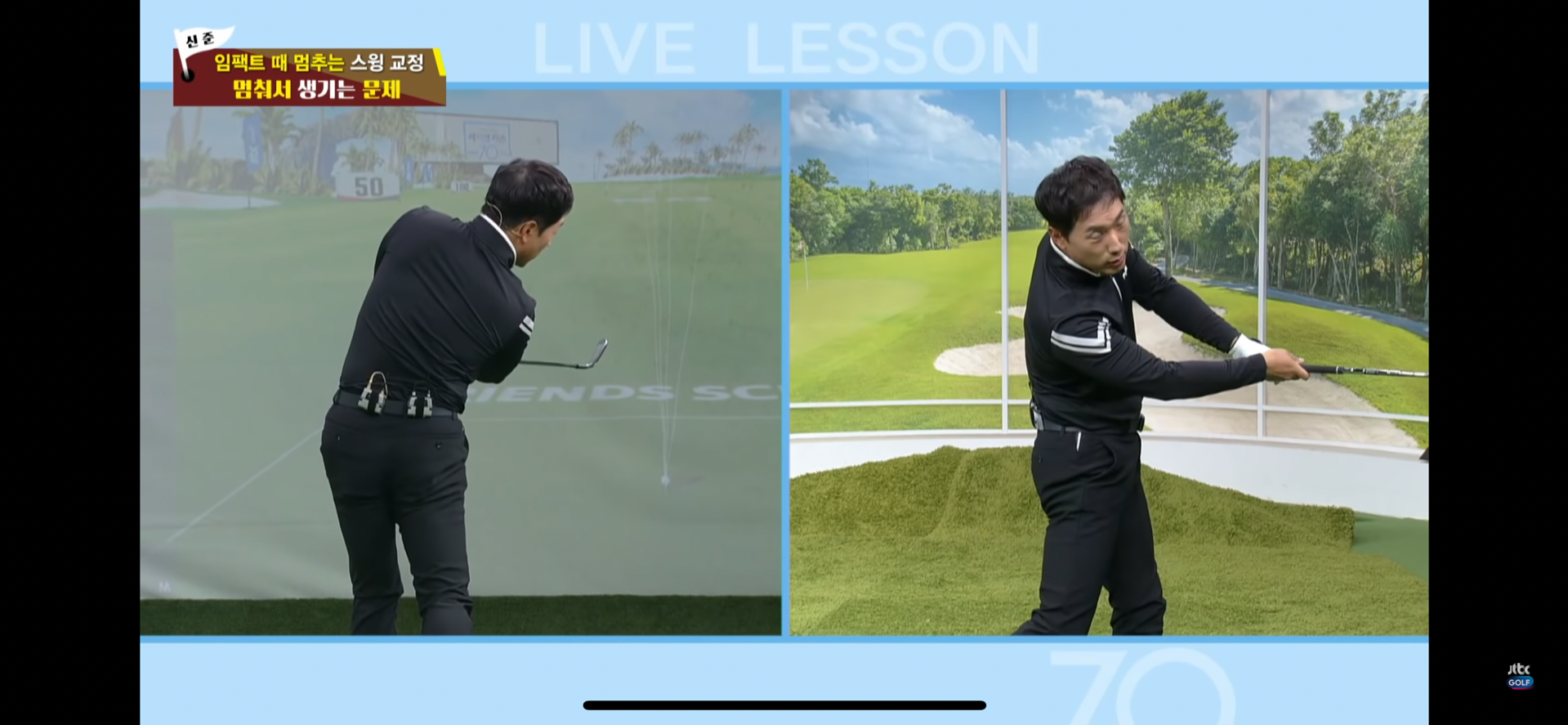 임팩트 이후 몸이 멈추고 회전을 안하니까