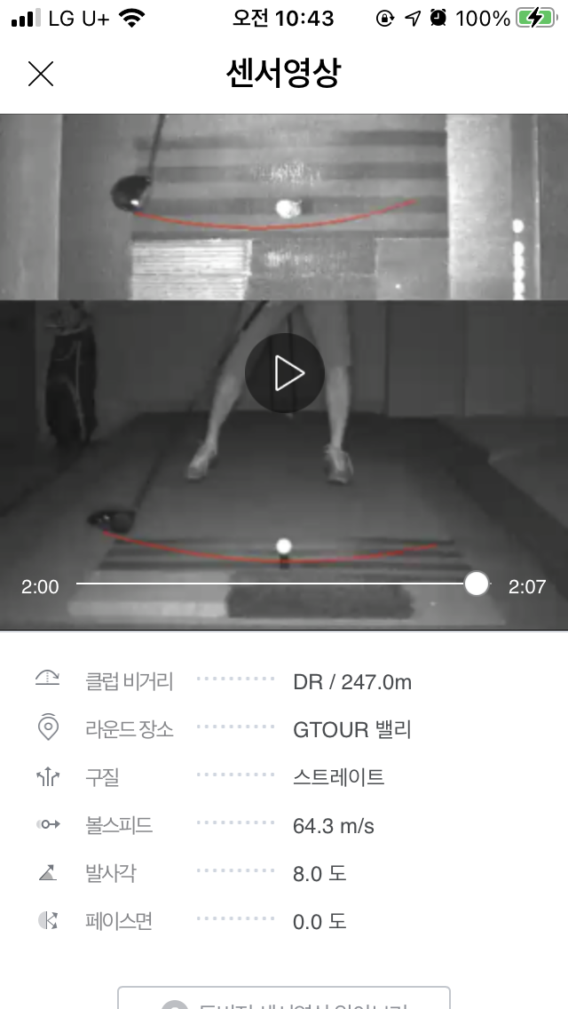 스윙 궤도와 발사각으로 인식되는 추정치이지요. 실제 필드와 다르긴 하지만 주 3회 정도 스크린을 치다보니 무시할 수 없는 부분도 있습니다. |