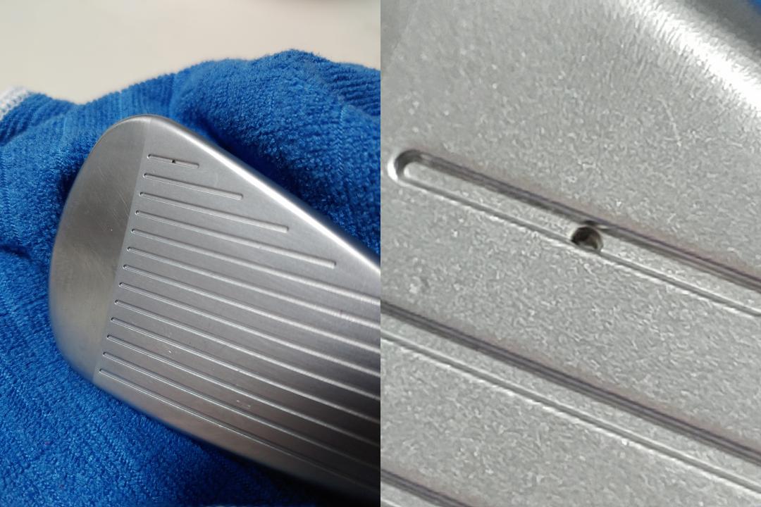 주말에 필드 다녀와서 장비 정리하다가보니 5번 아이언 맨 윗 그루브에 구멍이 났네요.