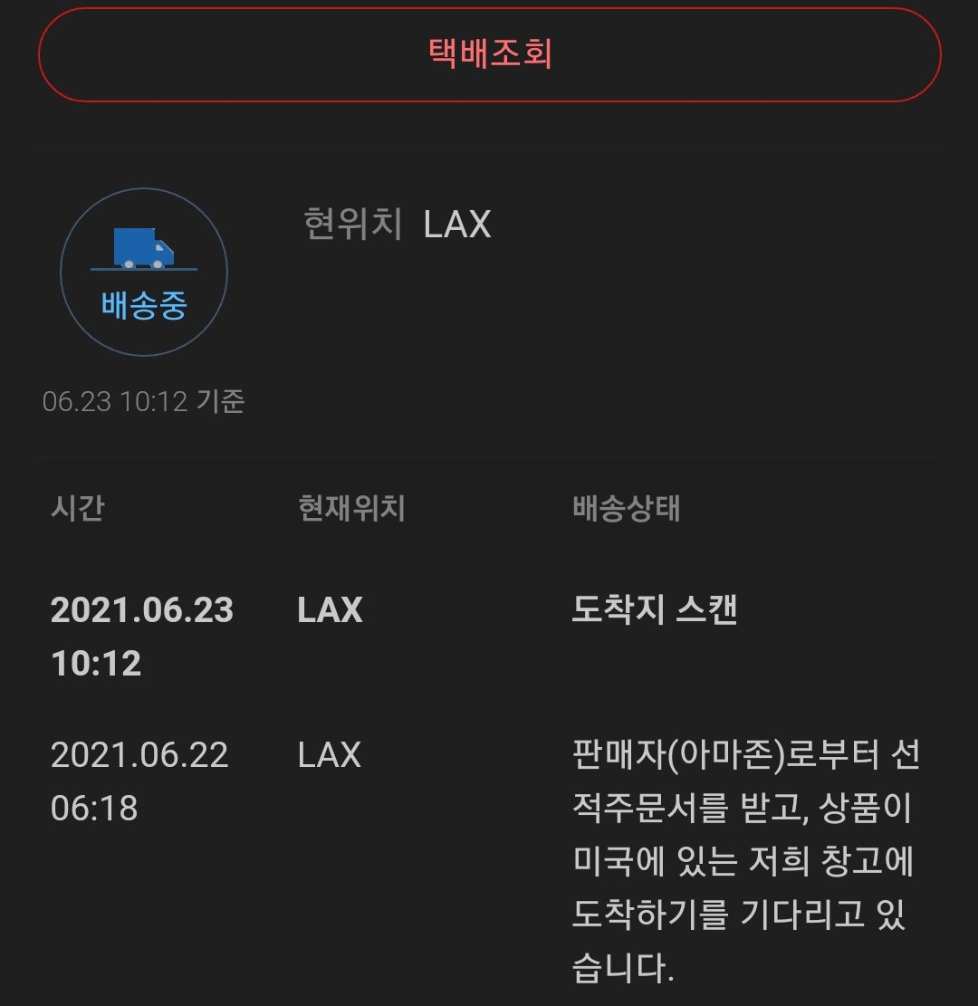 저도 22일 주문하고 님과 같은 단계에서 멈췄습니다 이유는 우편번호를 잘못적어서 미국 직배사인 ecms에서 국내배송을 안했다네요