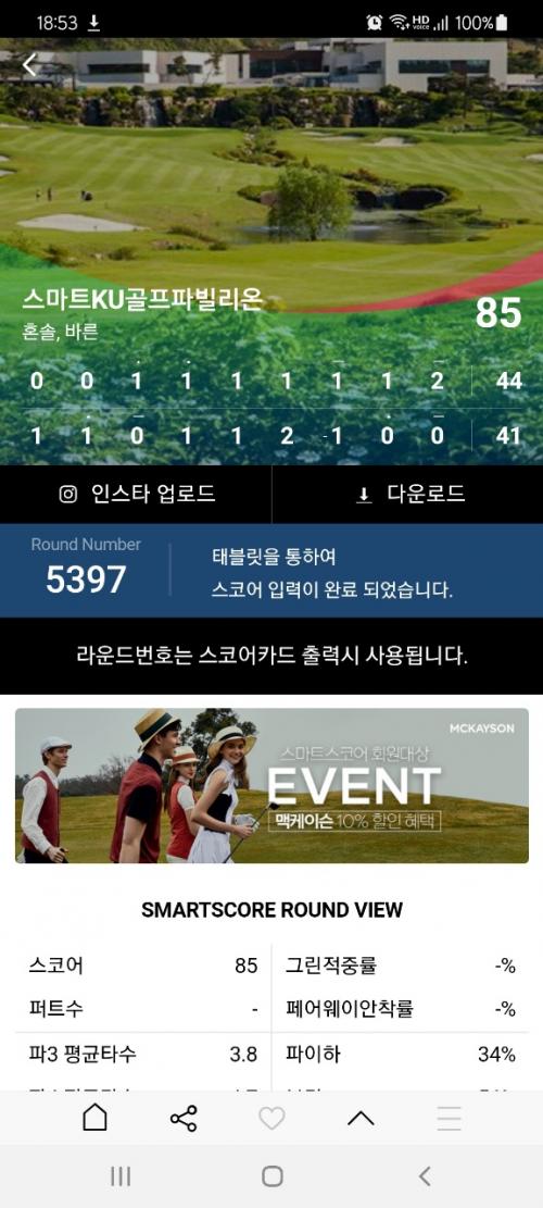 골프 코스가 쉬운 스마트 KU지만, 그래도 기분은 굉장히 좋네요^^