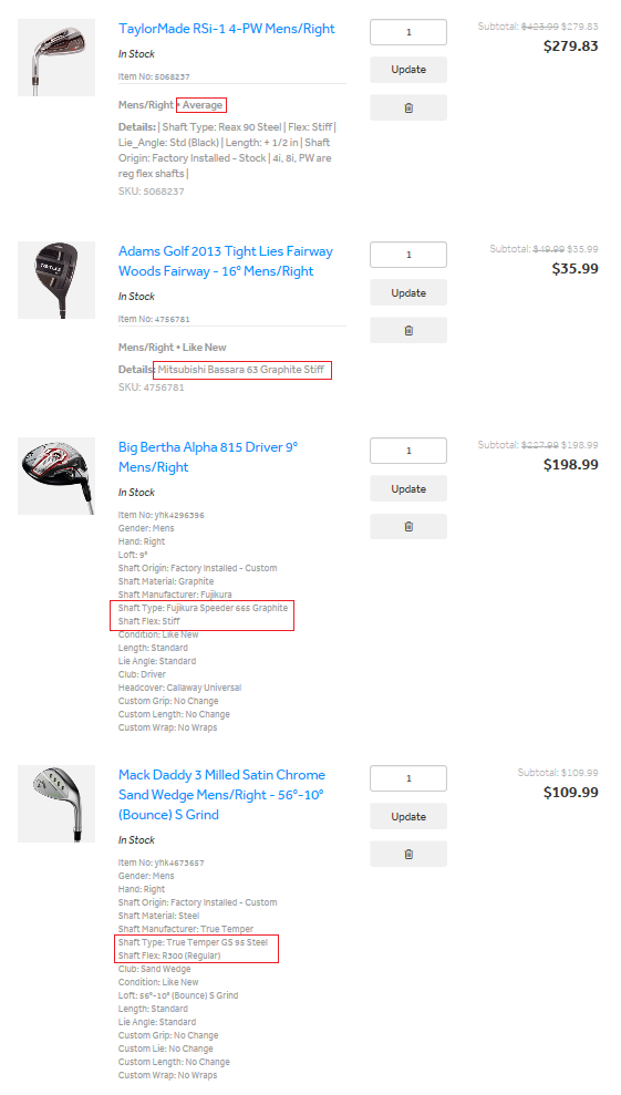 일단 샤프트 스펙이 다 맞지 않습니다.... | ||
