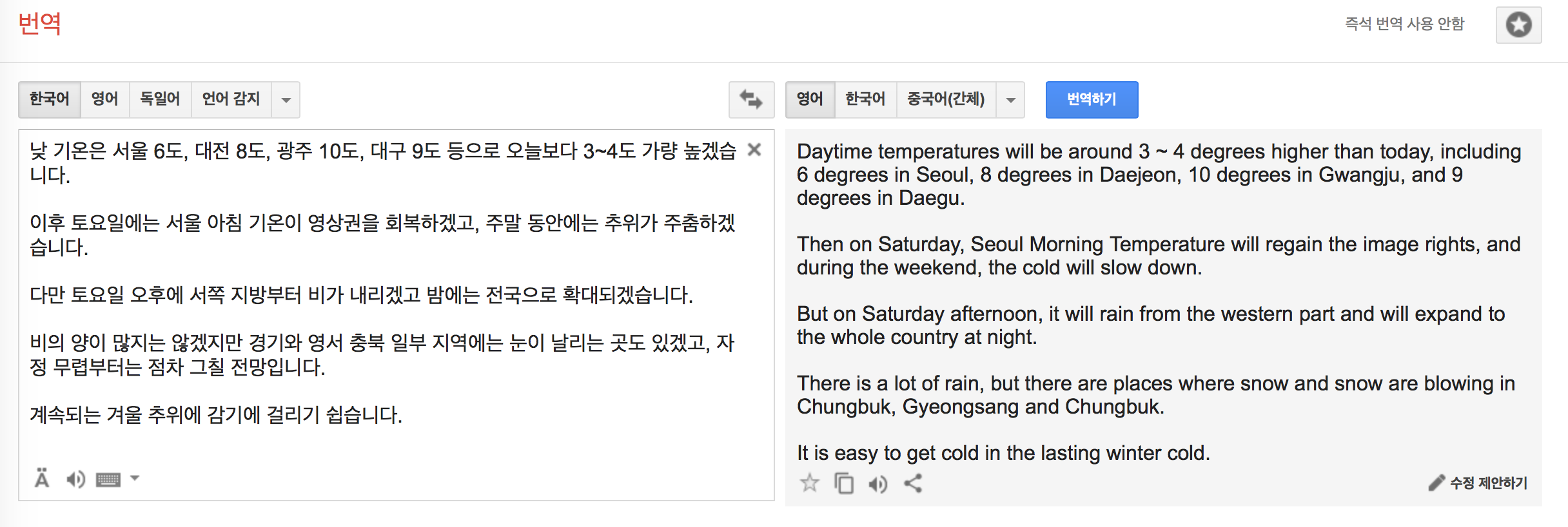 구글 영문 번역은 이정도 수준까지 올라왔습니다.