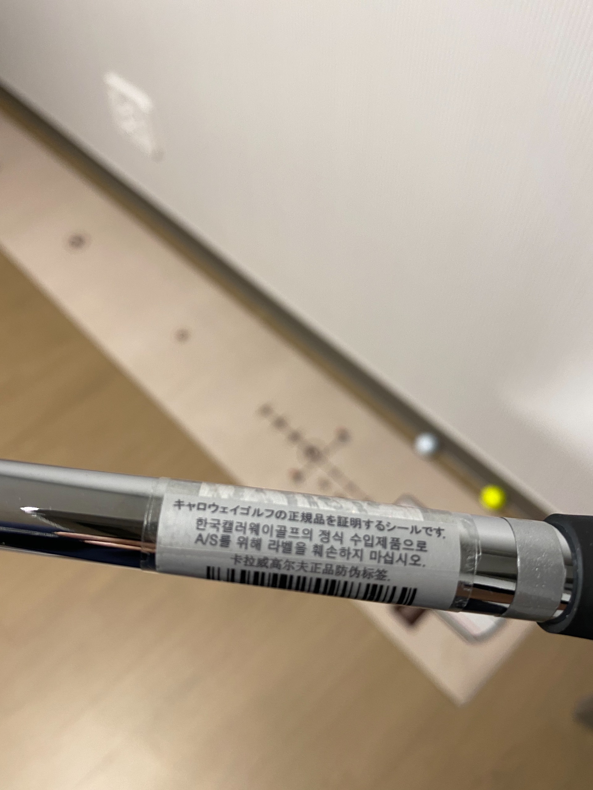 상태는 조금 기스가 있어서 나름 만족했는데, 샤프트에 캘러웨이 코리아 정품 스티커가 있네요. 재고가 돌고돌아 다시 한국으로 온듯 싶습니다. 별건 아니지만 기분은 좋네요 ㅎㅎ 이래서 협력사가 협력사 인것 같습니다. 다들 양품 득하시길 기원합니다.