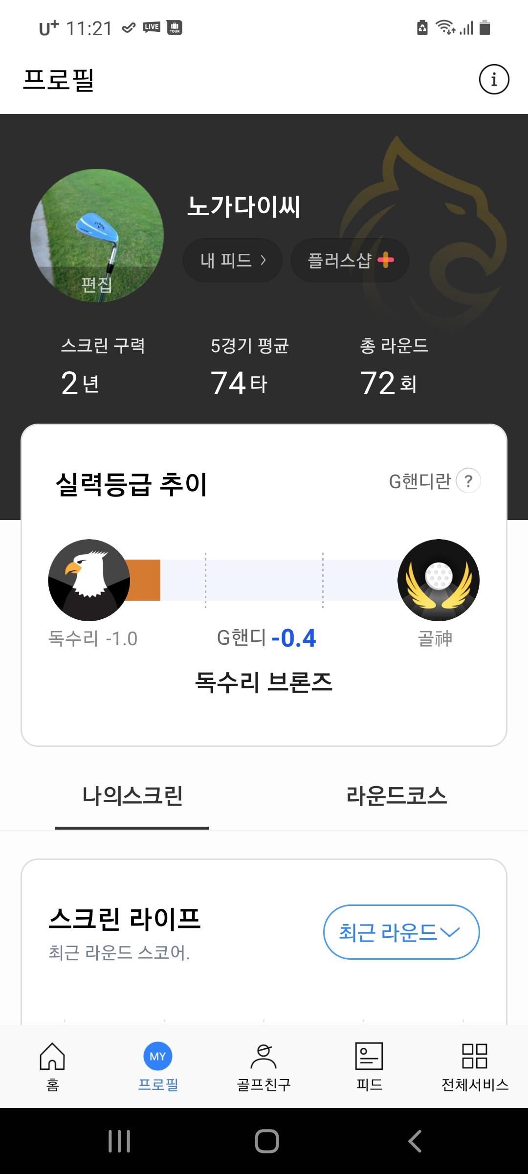 저도 요새 슬럼프인데 스크린은 점수가 잘나와서 독수리되었네요... |