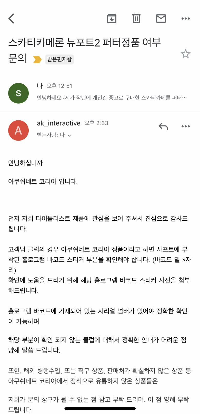 아~그렇군요. 감사합니다. 고객센터 메일로 문의 넣었습니다!! |