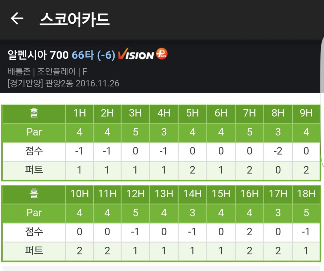 암튼 필드 백십돌이라 필드만 갔다오면 우울해지는데 스크린이라도 잘되니 기분 좋네요 ^^