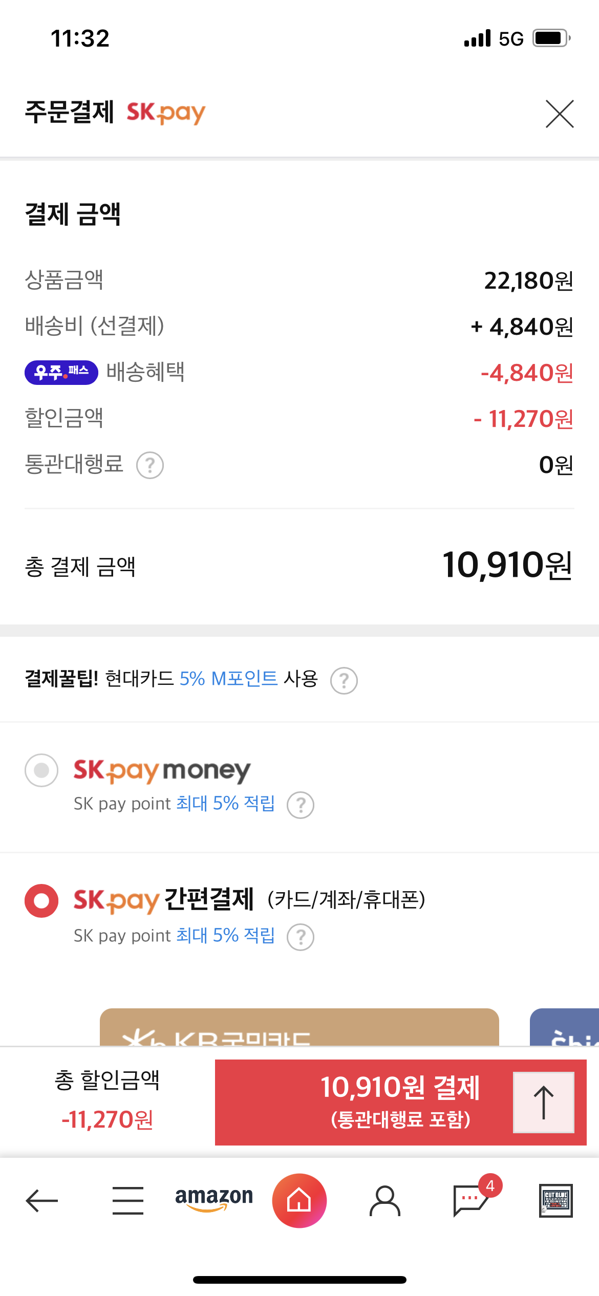 결제금액 : 10,910원