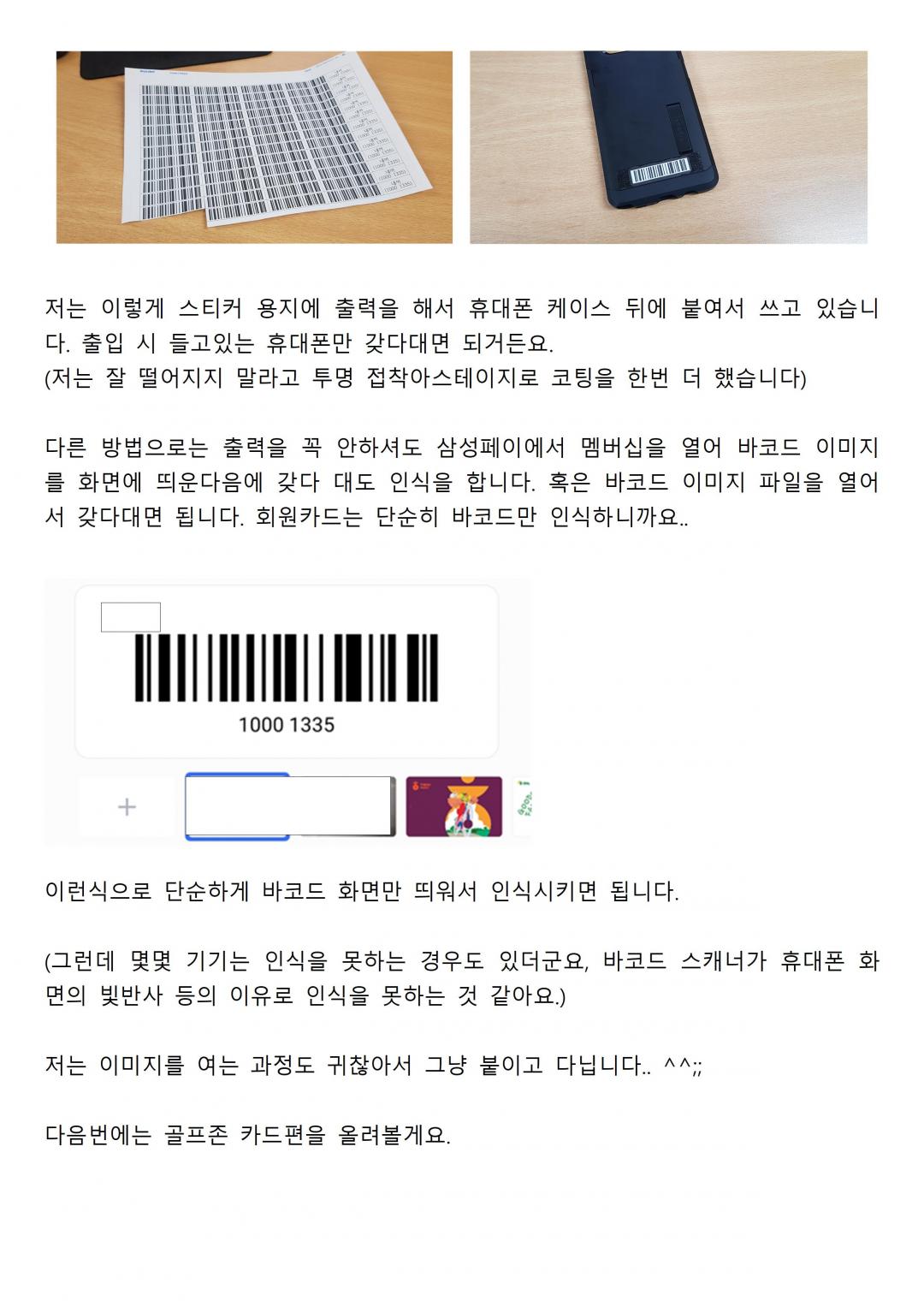 저도 설치점에서 동일하게 바코드등록해서 쓰고있습니다! 골프존 카드편 얼른 해주세요 |