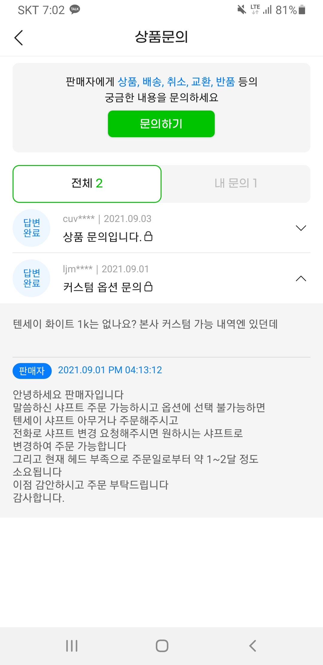 벤투스도 특주 가능하지만 텐세이 1k도 전화로 특주 가능합니다. 단 2개월까지 걸릴 수 있다고 하네요....