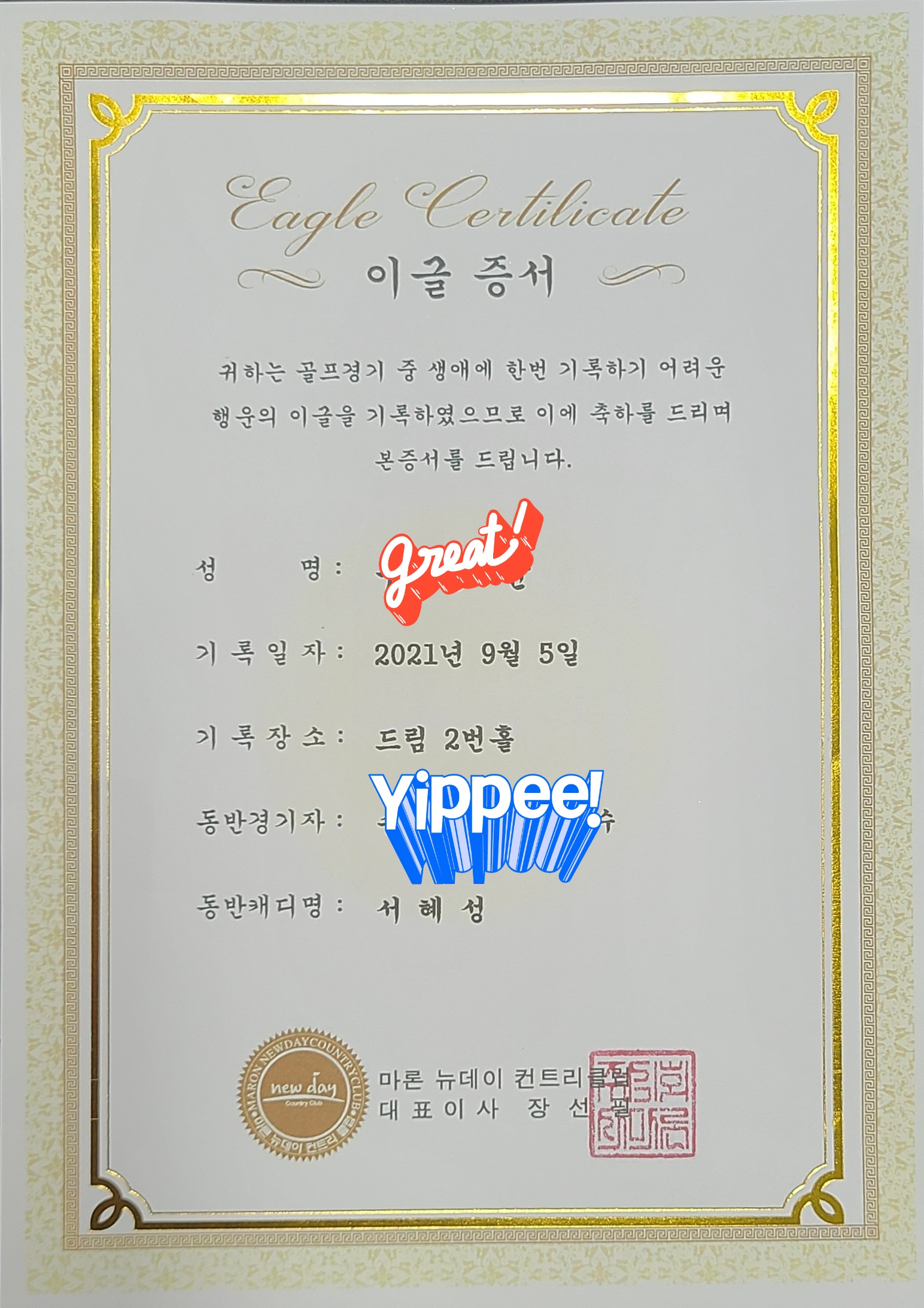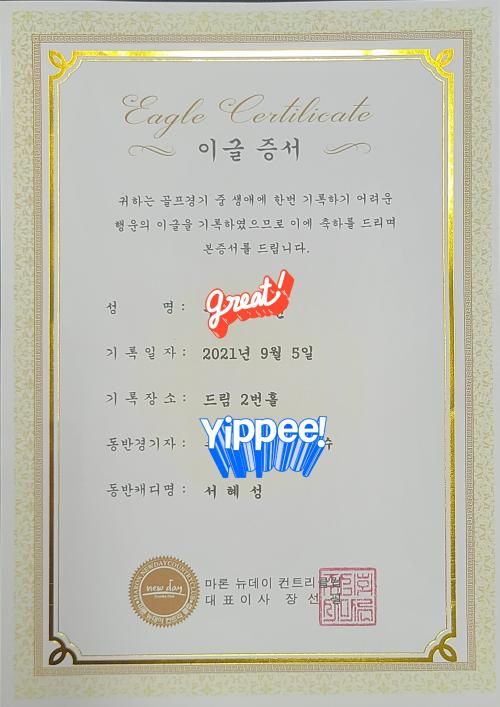 오늘 얼떨결에 대타로 가서 생애 첫 이글 했네요