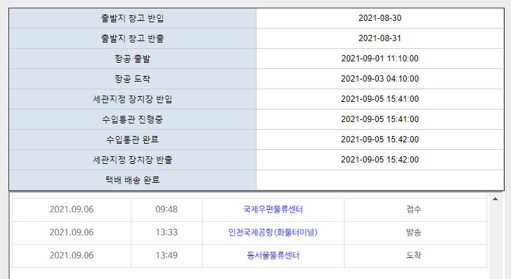 8/24일 협력사 구입 -> 27일 핵직구 도착 -> 30일 발송 ->9.7일 도착예정. 총 14일 (2주걸림)