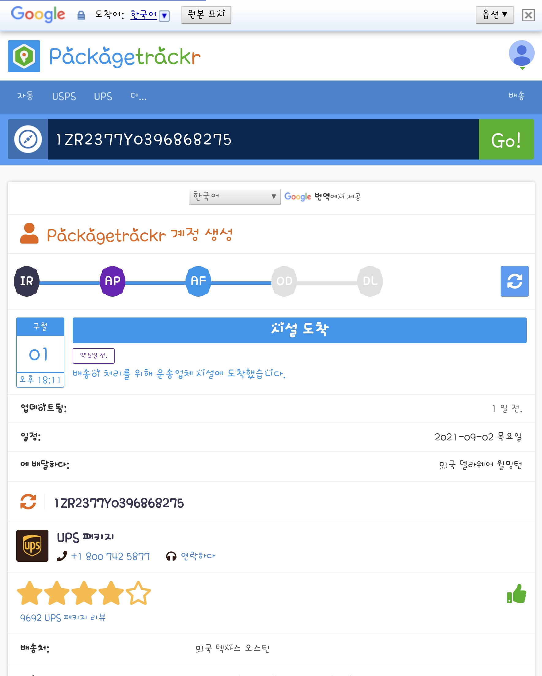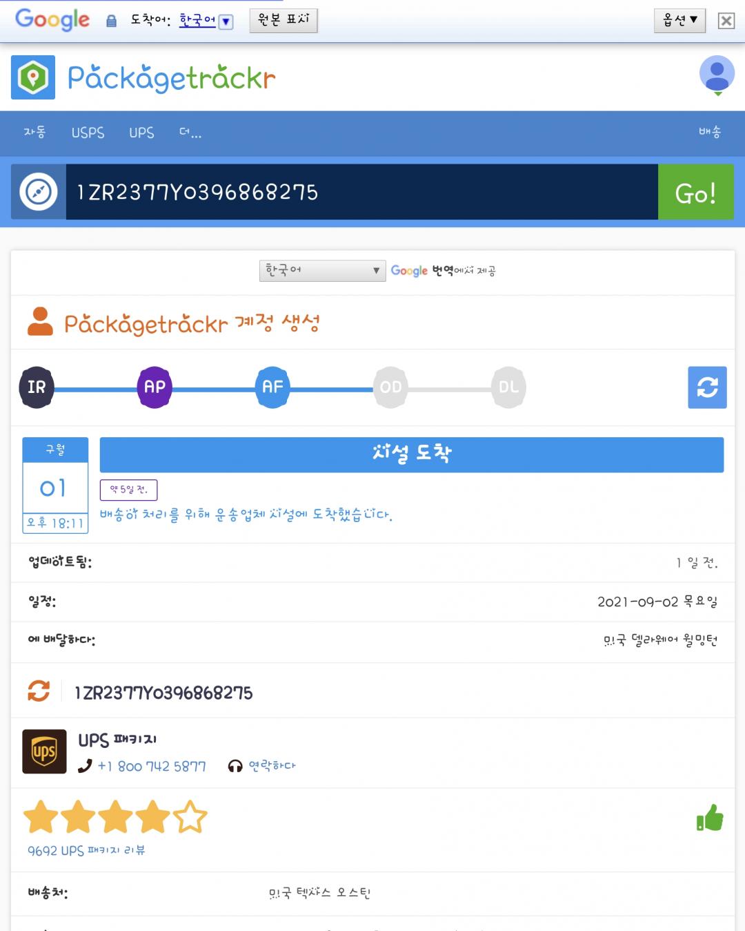 송장번호로 조회해 보니 9월1일날 저기서 멈춘거 같은데