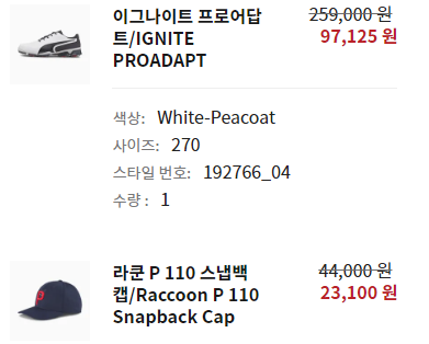 저번주까지 50%로 할인율 바뀌고 오늘아침에 25% 추가할인 코드 생성되었습니다 (코드 'PUMA CH' 입력)
