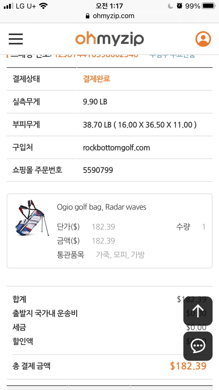 차이가 많이 나네요. 핵직구로 동일 상품 10% 쿠폰 써서 41불 결제했네요. |