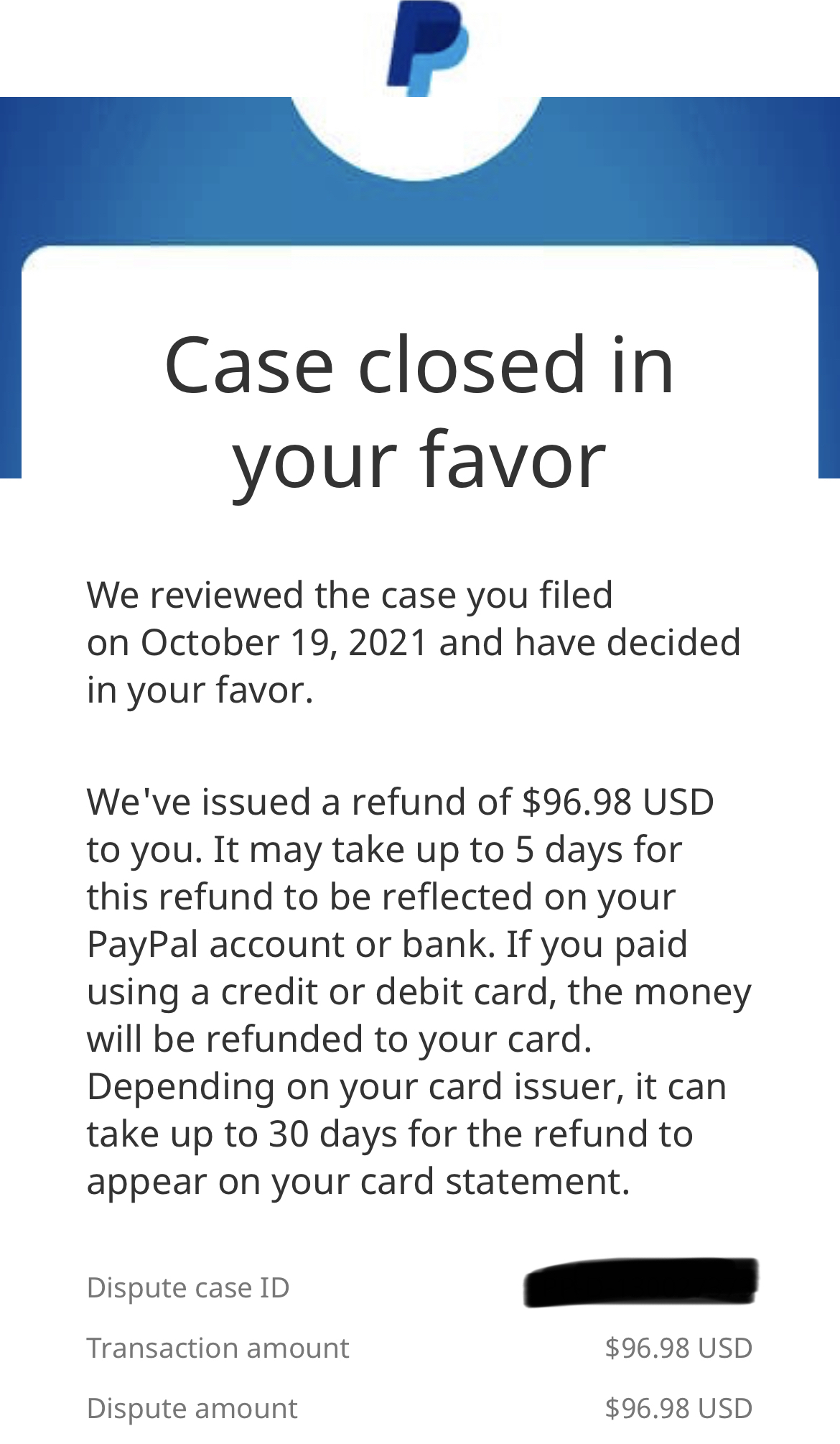 그래서 페이팔에 분쟁신청을 했더니 그냥 환불이 되었네요.
