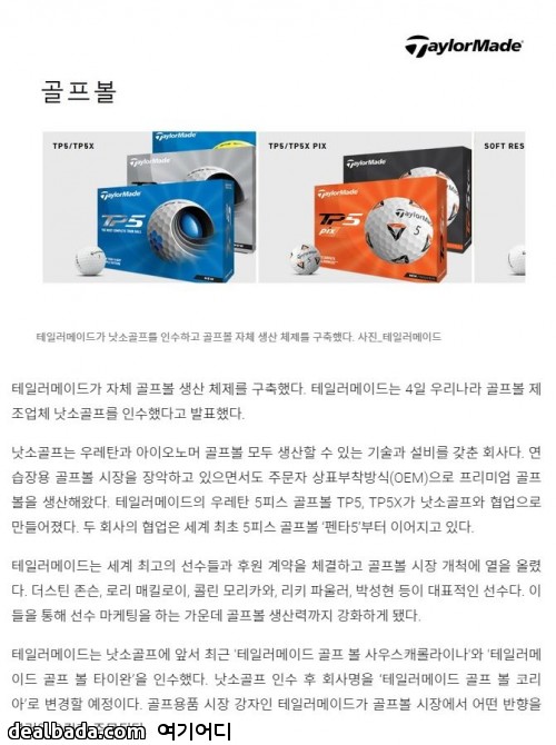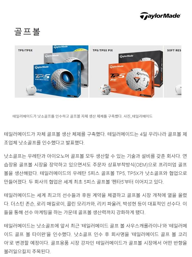 기존에도 테일러메이드 골프공 가격대가 있는건 나쏘에서 만든거로 아는데 결국 인수하나보네요 | ||