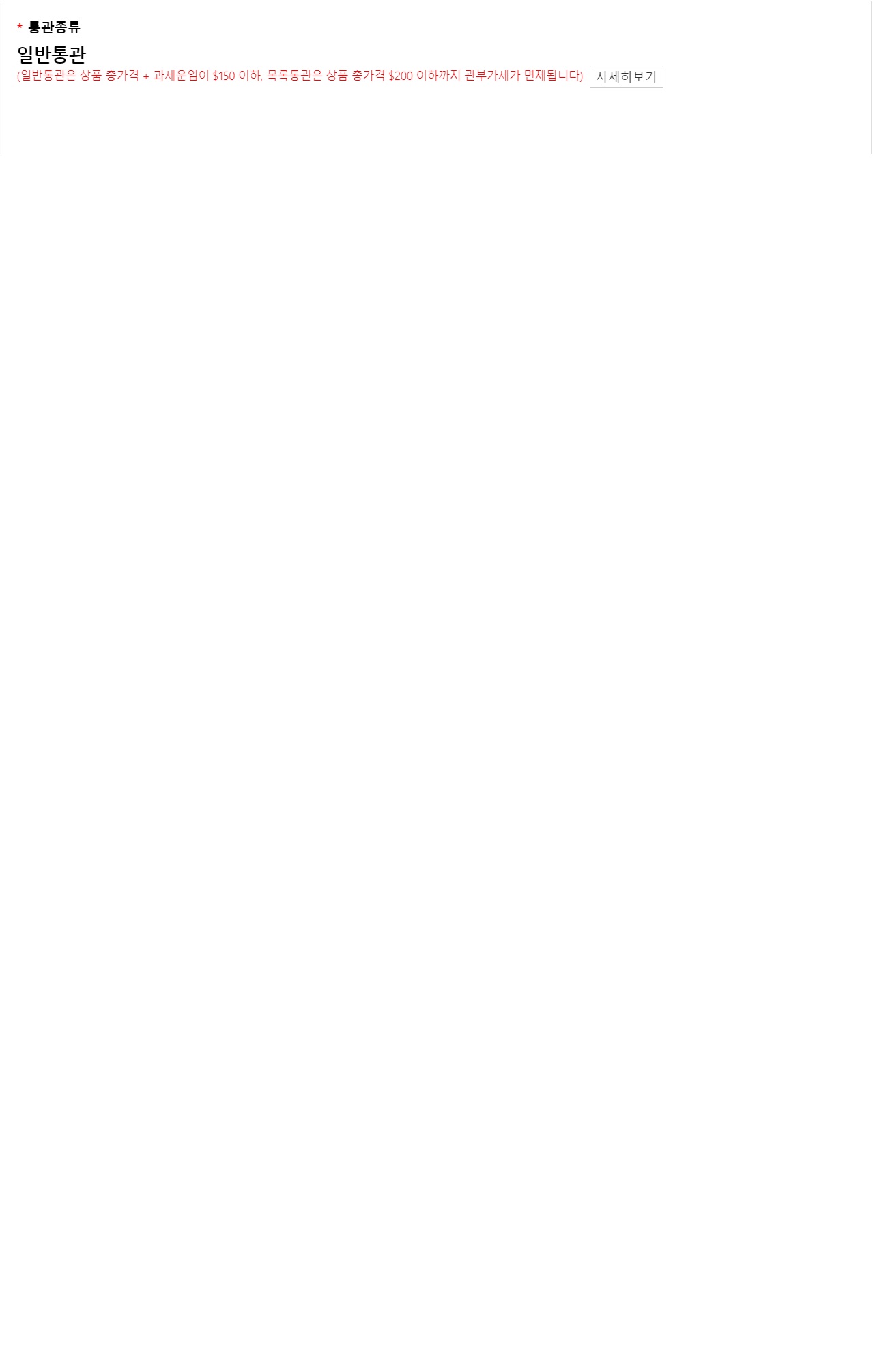 일반통관은 150불 이하 면제고