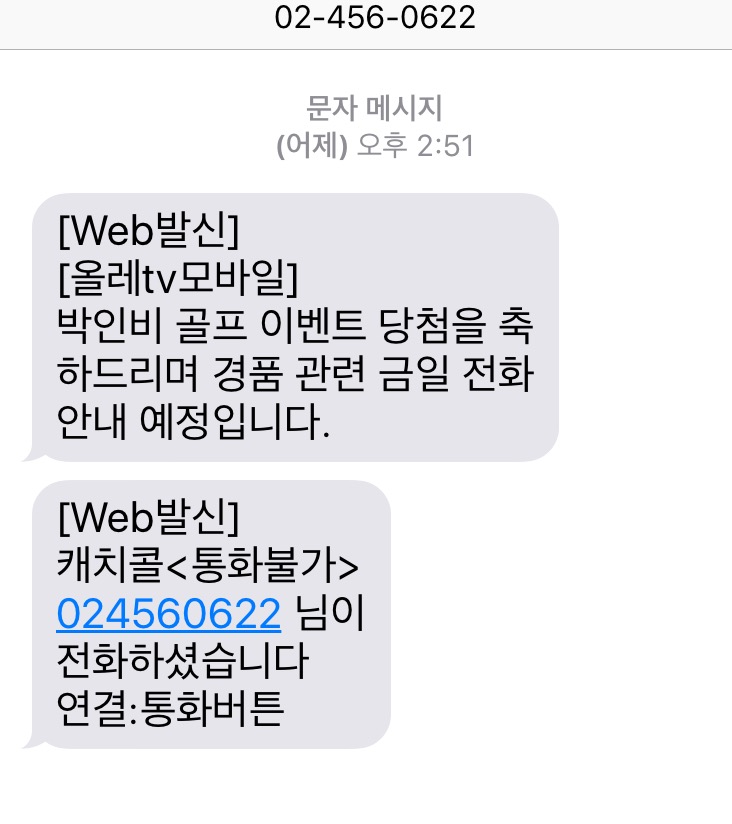 어제 당첨 문자를 받고 전화를 기다리다가 지하에 잠시 있다가 나오니 부재중 전화 문자만 와있네요 ㅠㅠ