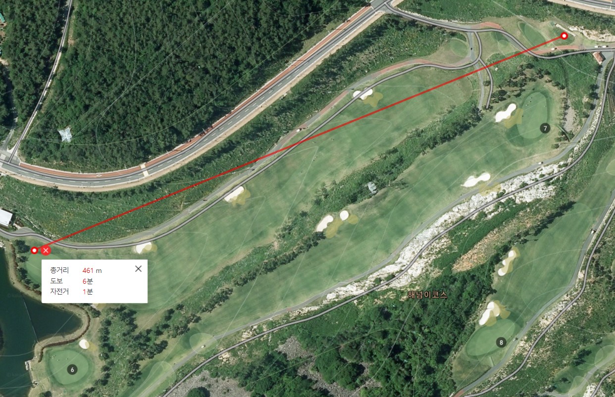 내리막 조금 짧은 파5 에서 티샷이 잘 맞아서 내리막 타고 가다가