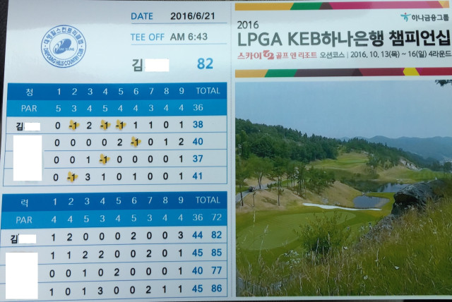 첫홀 전부 보기로 출발하였으나 캐디 언니의 넓은 아량으로 파로 적어주십니다..