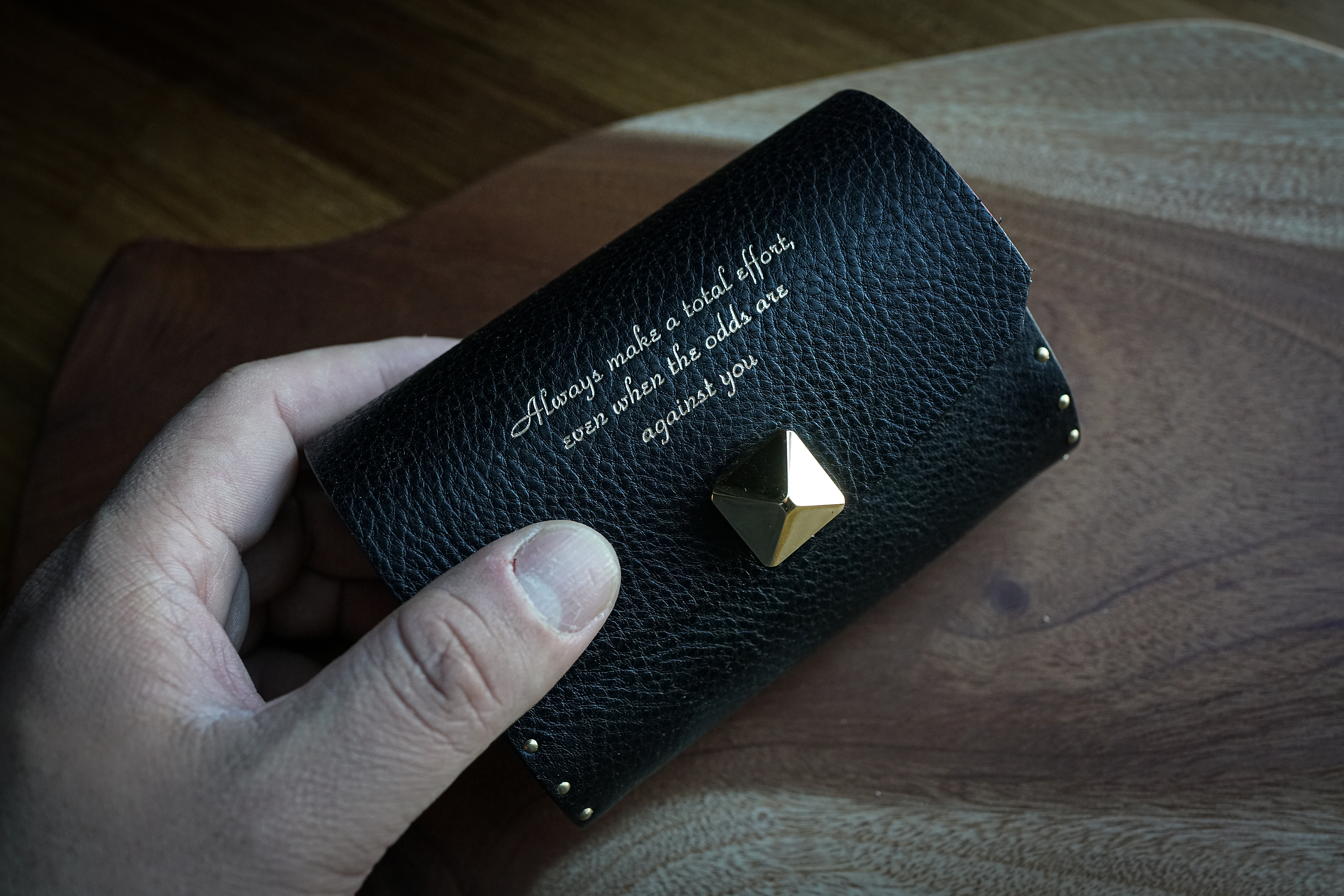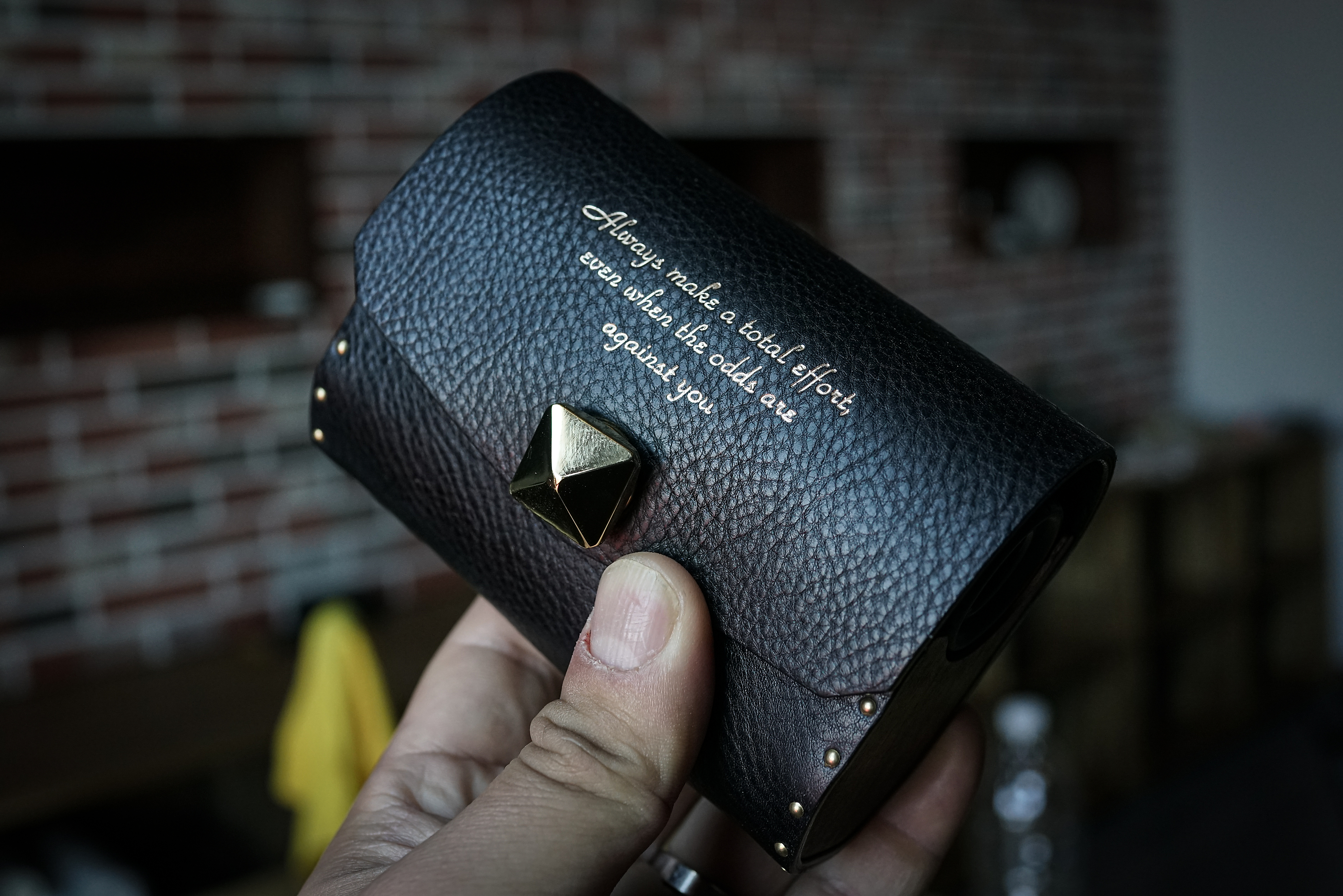 전면에는 뭔가 허전해서 아놀드파머의 명언 하나를 각인해봤습니다.