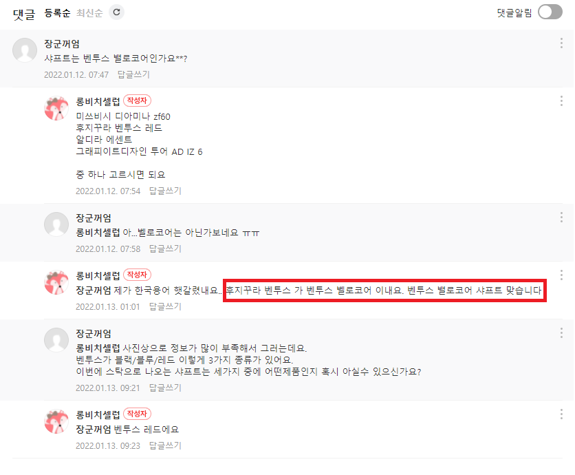 벨로코어 아닌 US스펙 스탁 일반 벤투스레드 말씀 하시는거죠?