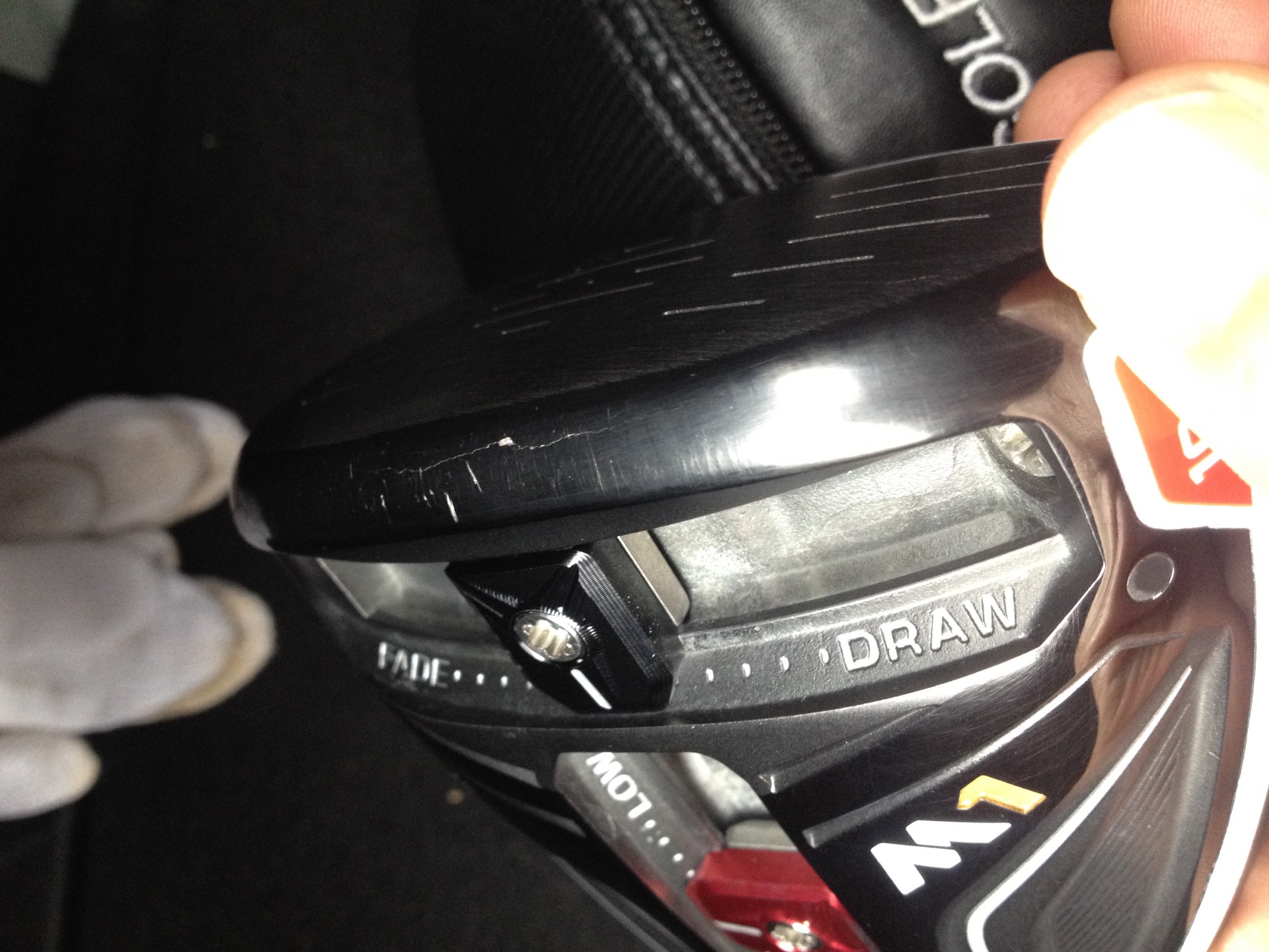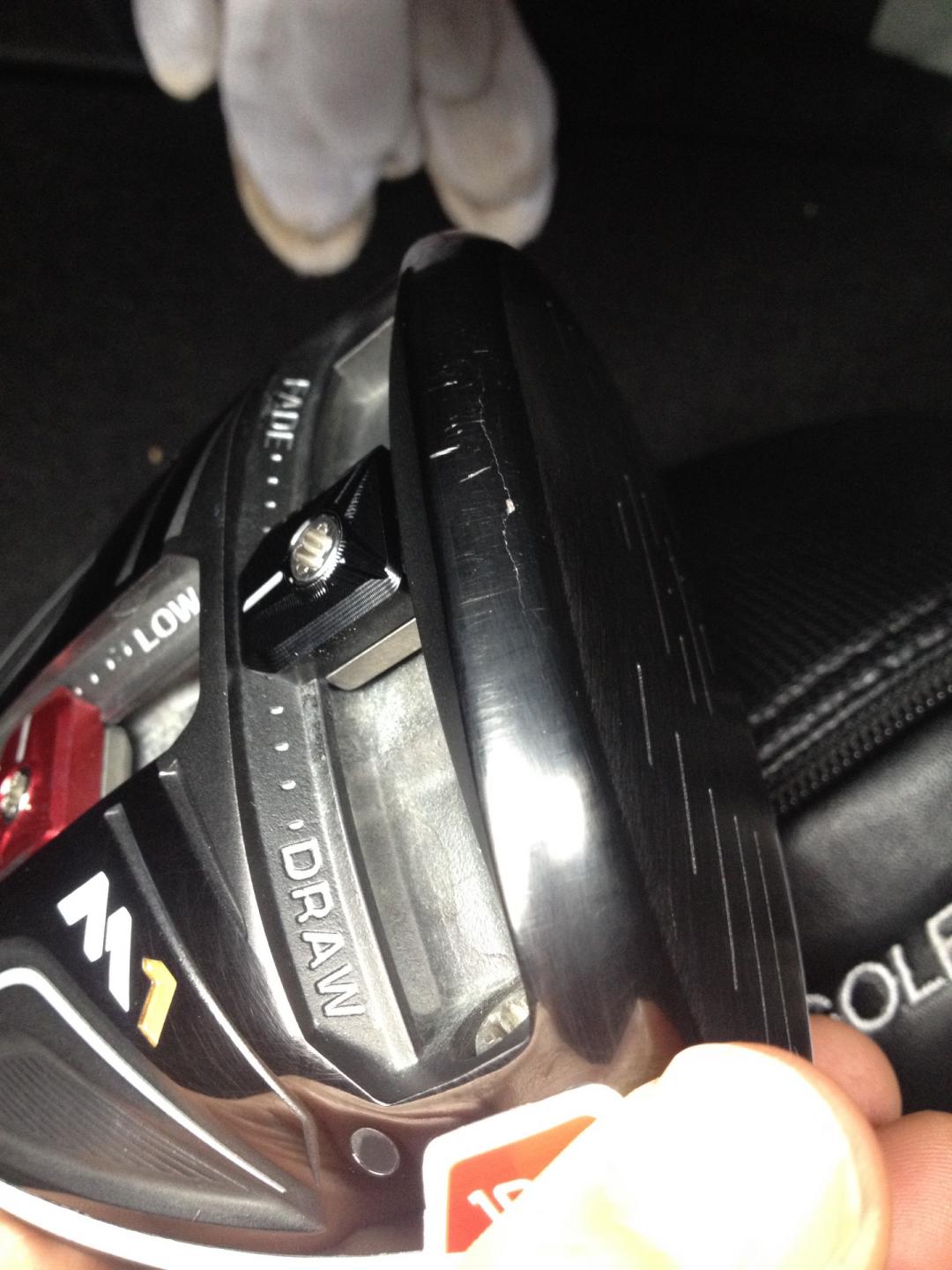 테일러메이드 M1 사용중 이상하게 타구음이 평상시보다 더 큰거 같아 보니 페이면 밑 솔 부분이 약간 금이간가 같습니다. 이거 헤드 깨진거 맞죠? 얼마전엔 7번 아이언 헤드가 눈앞에서 날아가는 신기한 경험을 하더니 이번엔 드라이버가 이모양 이네요. 정품등록은 안했구요 산지 1년이 안되었으면 무상 a/s는 문제 없겠죠?