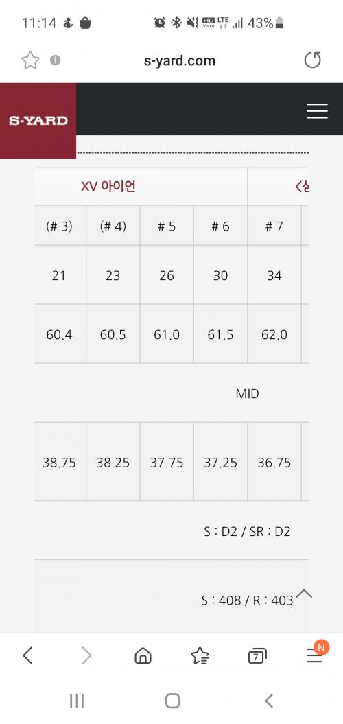 사진이 s-yard xv 라는 아이언의 스펙이고